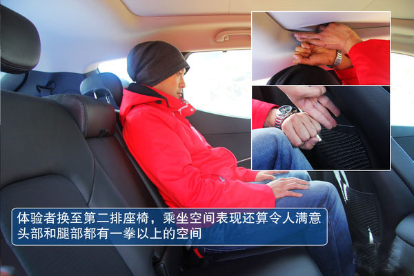 對(duì)于身高1.84米的乘客,第二排提供了比較舒適縱向腿部空間,雖然為了增加空間感,座椅坐墊的設(shè)計(jì)稍有些短,但是符合豪華車設(shè)計(jì)的座椅劇院式階梯布局,為后排乘客提供了更開闊的視野。第三排乘客仍舊能獲得適合乘坐的腿部空間,這就為酷威帶來更適合全家老小一同出行的乘坐空間。