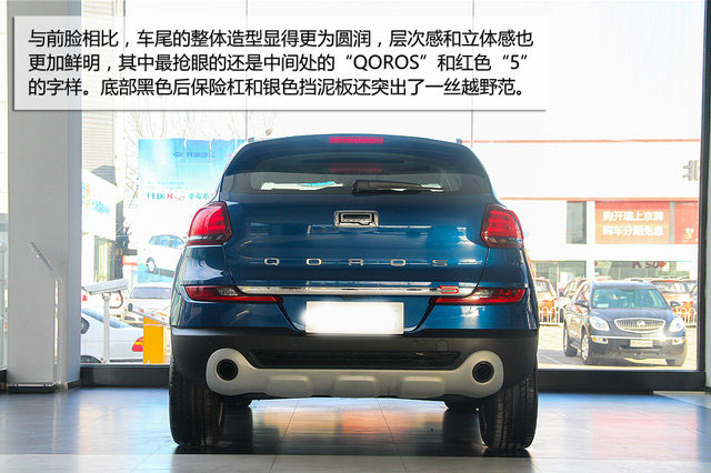 在SUV市場如日中天之際,觀致并沒有為了搶占市場而盲目跟風的推出SUV車型,相反則是花費了3年時間來精心打造,因此這也使得觀致5擁有著時尚前衛的外觀造型。整車飽滿且敦實,前臉同樣采用了家族式的設計理念,只是中網外圍的鍍鉻條尺寸更大了些,這也更加符合SUV所需要的氣質,細長型的前大燈組內部結構是個亮點,盡管與路虎極光的設計有些相似,但觀致自家的特色也很醒目,LED日間行車燈、透鏡組合和自動大燈也都是國人喜愛的配置。下保險杠則采用了一體化的造型,立體層次感強烈,兩側還內嵌了霧燈。車身側面的設計也有層次感,尤其是大量的鍍鉻件和踏板更抓住了國人的胃口,而車尾的造型則顯得圓潤不少,紅寶石般的尾燈和黑色保險杠與銀色擋泥板均突出了整車的運動范。