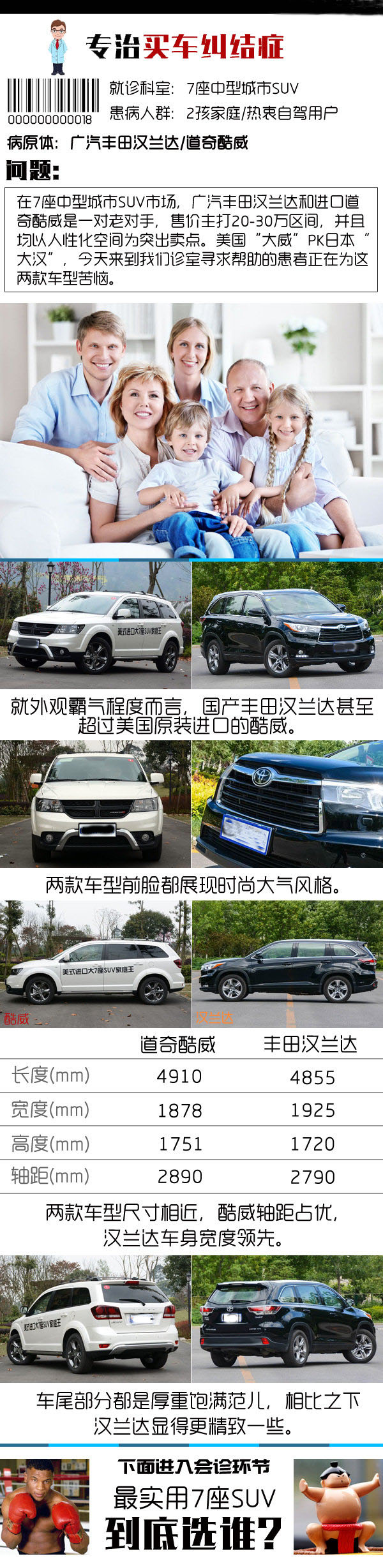對于熱愛全家自駕出行的消費者來說,選擇一款第三排座椅具有實用價值的SUV十分必要。在7座中型城市SUV市場,廣汽豐田漢蘭達和進口道奇酷威是一對老對手,售價主打20-30萬區間,并且均以人性化空間為突出賣點。美國“大威”PK日本“大漢”,實用性最強的7座SUV如何選?