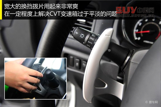 與2.0L發動機搭配的一臺CVT變速箱,通過電腦控制模擬了六個前進檔位。CVT變速箱的使用讓C4 Aircross擁有了比競爭對手更加出色的平順性,但在提升舒適性的同時車輛的運動能力和駕駛樂趣自然會受到一些影響,所以為了增加它的駕駛樂趣,廠家特意為其配置了一個巨大的換擋撥片,手感相當不錯。
