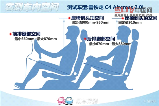 空間方面,C4 Aircross的軸距為2670mm,在同級別車型中屬于中游水平。體驗者身高1.78米,前排座椅調整至最低后,頭部距離車頂只有一拳距離。而后排腿部富裕空間超過一拳,,但頭部空間一般,幾乎沒有太多富裕空間。總體來看,C4 Aircross的空間只能算是夠用,屬于標準的緊湊級SUV。