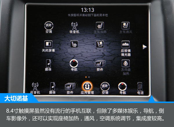 總結(jié):2016款車(chē)型在造型上并沒(méi)有大的調(diào)整,只是在部分細(xì)節(jié)上有些變化。當(dāng)然,作為已成經(jīng)典的風(fēng)格,大切諾基勇猛、復(fù)古、崇尚自由的設(shè)計(jì)理念已沒(méi)有去突破性改變的必要。在配置上的提升為我們帶來(lái)了更加舒適的乘坐體驗(yàn)和長(zhǎng)途跋涉中更全方位的享樂(lè),對(duì)于與諸多同級(jí)別豪華SUV抗衡的它來(lái)說(shuō),無(wú)疑增添了更多競(jìng)爭(zhēng)的籌碼。