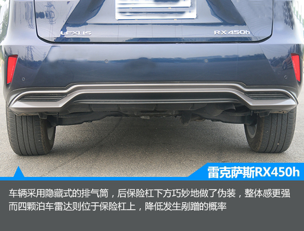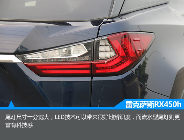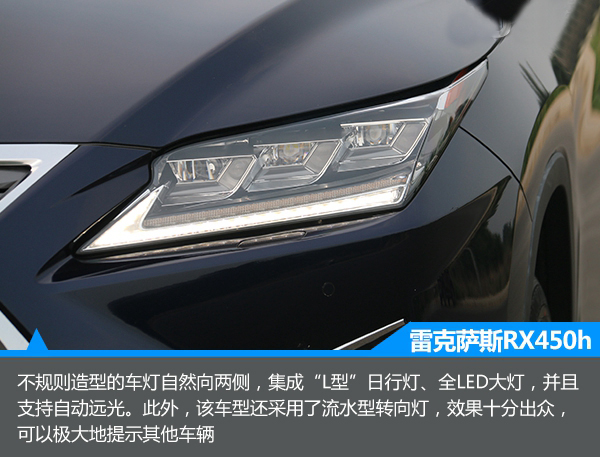在外觀同質化越來越明顯的今天,各大車企的產品都打上了自家烙印,RX也擁有家族化的外觀設計,造型犀利,并且擁有很高的辨識度。車頭采用了雷克薩斯最新的設計語言,大量平直的線條勾勒出十分兇狠的外觀,中網采用獨特的“紡錘形”設計,中間則是代表著混動的藍色雷克薩斯車標。而RX大燈同樣是“特立獨行”,不規則造型的設計自然向兩邊延伸,搭配“對勾”的LED日行燈,擁有非常強的辨識度。來到側面,車輛造型同樣“犀利”,RX采用隱藏C柱的設計,并且在C柱之后有一個自然下墜,在保證空間的同時,顯得十分動感。車輛尾部寬大,采用隱藏式排氣的布局,不僅整體感很強,還顯得十分大氣。
