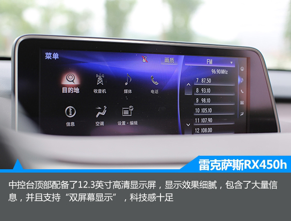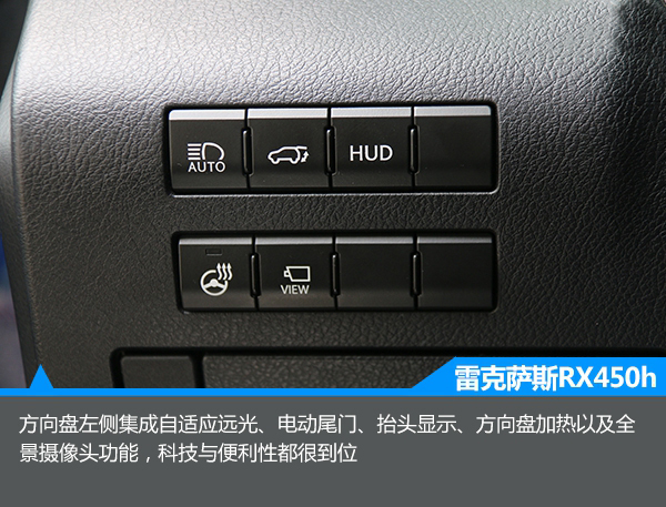 拉開車門,這臺RX450h配備了無鑰匙進入與一鍵啟動,鑰匙不需要拿出來,很是方便。調整好坐姿,該車型還配備了舒適進入,小細節做的十分到位。按下點火開關,令人驚喜的是,這臺450h在消無聲息的情況下,就進入待命的狀態,如果不是儀表盤各個指示燈點亮,完全察覺不到車輛已經啟動。得益于寬大的車身,RX的座椅比較高,由此帶來了非常不錯的視野。而該車配備的360°全景攝像頭則可以降低車輛在狹小空間內穿行的困難程度。
