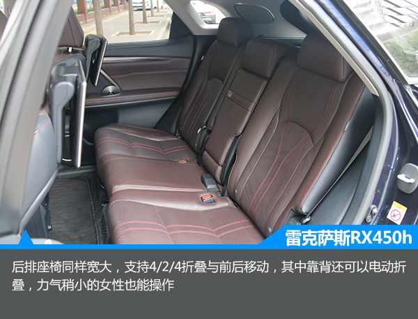 雷克薩斯RX450h定位于中大型SUV,該車的車身尺寸達到了4890*1895*1705mm,軸距則為2790mm,由于是5座的設定,空間表現完全沒問題。身高178cm的男性體驗者調整好坐姿后,頭部擁有一拳的空間,保持前排不動,該體驗者來到后排后,頭部擁有一拳的空間,而腿部則更是達到了一掌半的距離,RX的空間表現令人滿意。此外,RX450h的后排中央地板近乎純平,坐在后排中間的乘客也能很舒服,這點值得肯定。得益于人性化的設計,RX450h的儲存空間十分豐富,各類物品都能找到地方放置,并且該車的后排可以4/2/4折疊,車內空間可以靈活變換。