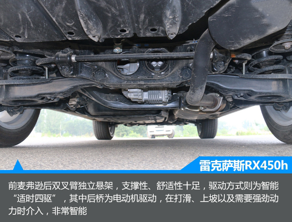 作為豐田的看家本領,混合動力同樣應用在了雷克薩斯RX450h上面,其采用了發動機+前后電動機的配備方式,其中發動機的代號為2GR-FXS,排氣量3.5L,采用阿特金森循環,該引擎擁有193kW的最大功率,同時可以輸出335N·m的峰值扭矩。而前后橋各配備一個電動機,總功率173kW,總扭矩達到474N·m,與這套動力系統匹配的是可模擬6速的E-CVT電子無級變速箱。此外,在驅動方式方面,RX450h屬于“智能適時四驅”,由于后橋配備了電動機,后輪由電動機驅動,該車型沒有中央傳動軸,取而代之的是一條“電纜”。正常情況下,位于后橋的電動機不啟動,車輛以前驅的方式行駛,當遇到打滑、上坡以及需要較大動力輸出時,后橋由電動機輸出動力,車輛變成四輪驅動。