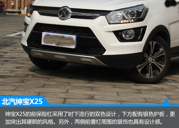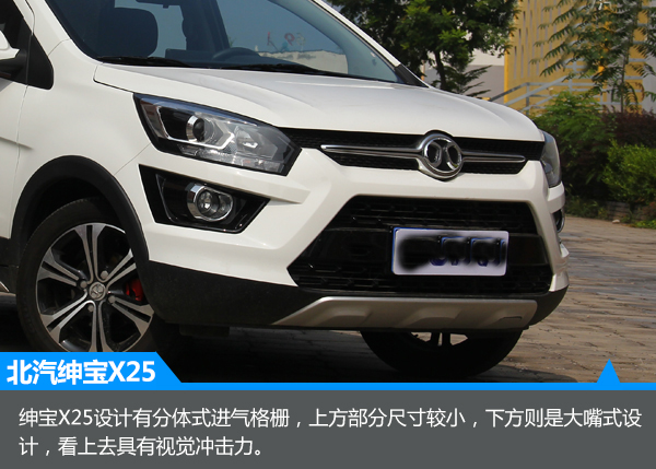 不得不說(shuō),北汽紳寶X25自發(fā)布以來(lái)便受到了廣泛關(guān)注,很大程度是因?yàn)檫@款車有著較高的顏值。紳寶X25整個(gè)車身線條都是非常硬朗犀利的風(fēng)格,因此整車看上去具有一定力量感,非常符合SUV的車型定位。同時(shí),由于設(shè)計(jì)師們準(zhǔn)確的把握了這款新車的定位,因此它的造型才更符合年輕人的審美。值得一提的是,鑲嵌于進(jìn)氣格柵的品牌LOGO雖然與紳寶X55和X65等產(chǎn)品相同,但兩側(cè)沒(méi)有了類似飛翼的鍍鉻裝飾,在繼承了家族特征的條件下也擁有了屬于自己的獨(dú)特元素。