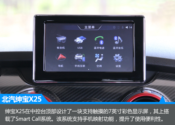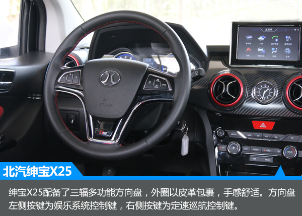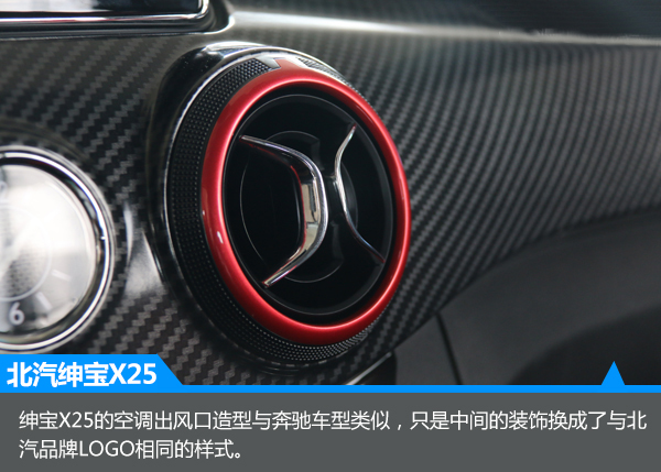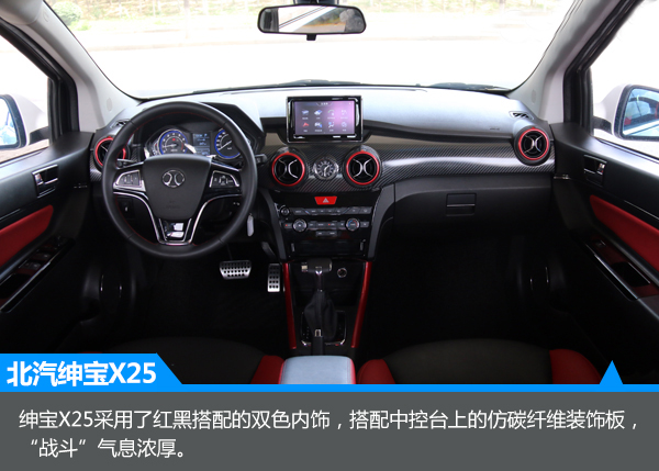 作為一款主打年輕時(shí)尚的小型SUV,紳寶X25在內(nèi)飾設(shè)計(jì)上同樣緊隨潮流,采用了紅黑搭配的雙色配色。同時(shí),中控臺(tái)上還采用了大面積仿碳纖維裝飾面板,為座艙營(yíng)造出一定的“戰(zhàn)斗”氣息。而且,整個(gè)中控臺(tái)造型與奔馳家族的車型有幾分相似,有著不錯(cuò)的視覺(jué)效果。此外,在內(nèi)飾用料方面,出于成本控制,紳寶X25的整個(gè)內(nèi)飾用了大面積的硬質(zhì)塑料,當(dāng)然,同級(jí)車型也都是如此。雖然用料沒(méi)那么昂貴,但紳寶X25內(nèi)飾細(xì)節(jié)的處理還比較到位,各部分組件間的間隙很均勻,值得稱贊。