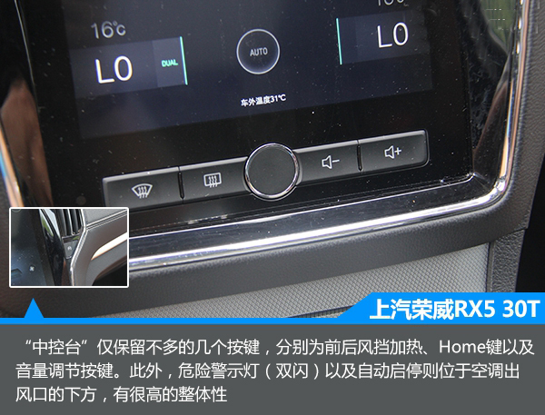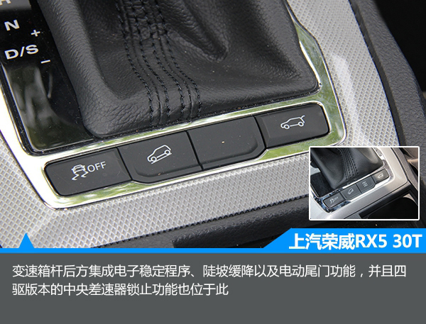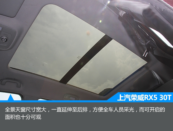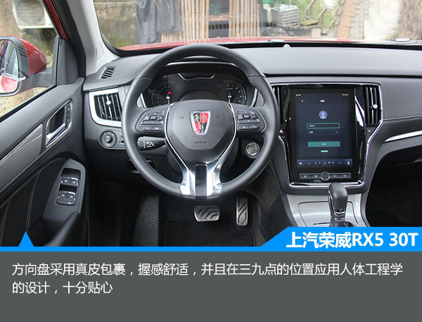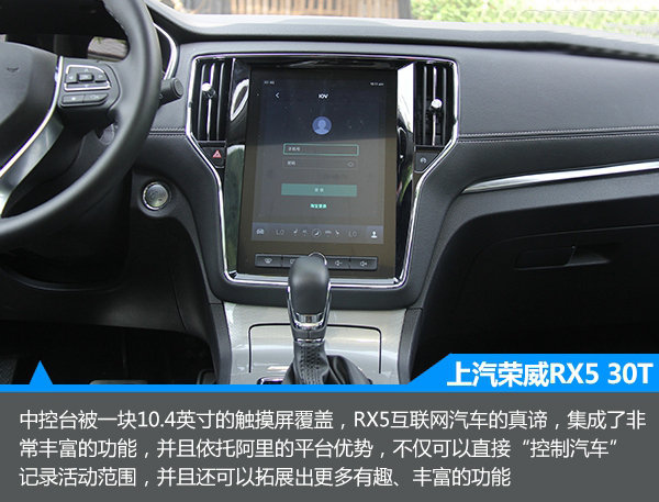 打開車門,編輯立刻被中控臺上10.4英寸的顯示屏所吸引,寬大的顯示屏不僅科技感十足,并且還是榮威互聯網汽車的真諦,屏幕分辨率相當高,顯示清晰并且信息量巨大,中控臺僅僅保留幾個物理按鍵。與此同時,這塊“ipad”還略微向駕駛員一側傾斜,確保駕駛員的行車安全。此外,中控臺以及門邊可以觸的地方,幾乎都采用軟性材料包裹,不僅豪華感十足,同時對于車內乘客的舒適度也有不小地提升。此外,包括全景天窗、電動尾門等在RX5上也都有配備,極大地提升了舒適性。