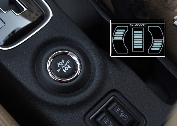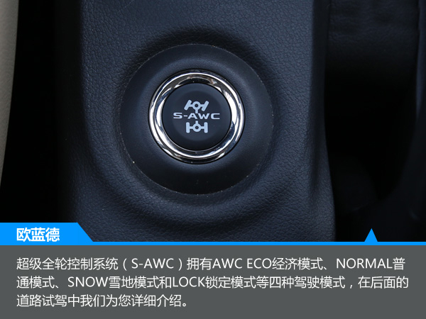 頂配車型搭配了S-AWC超級全輪控制系統(tǒng),該系統(tǒng)根據(jù)路面狀況和行駛狀況擁有AWC ECO經(jīng)濟模式、NORMAL普通模式、SNOW雪地模式和LOCK鎖定模式四種駕駛模式,根據(jù)路況切換控制模式,可以獲得最適合的控制效果,作為一臺城市SUV,有了它便能爆發(fā)洪荒之力了。