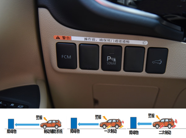 在主動安全方面搭載了FCM前方碰撞預(yù)防輔助制動系統(tǒng),該系統(tǒng)利用雷達感應(yīng)裝置可以檢測到前方障礙物,對前方發(fā)生的危險發(fā)出警報,同時可以自動制動,一定程度上可以防止碰撞或減輕碰撞傷害。