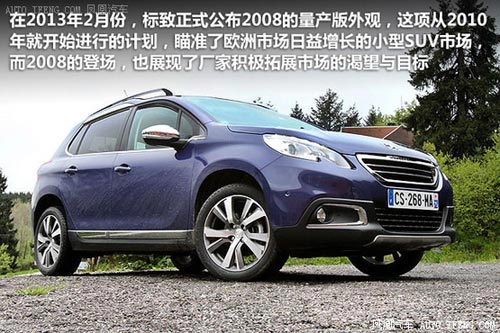 為了再次將品牌既有的動感樂趣本質呈現,標致打造20X系列最新座駕的208,同步地強化品牌整體競爭力,同時,在3008與5008車系推出后在全球市場皆獲得熱烈響應,標致也以208的底盤為基礎,瞄準日益增長的小型跨界SUV車型,推出品牌首款跨界的小型SUV,也就是現行“X00X”系列的第3款作品的2008 (1007已經停產、4007是與三菱汽車合作開發)。搭載與208相同底盤的2008,同樣也延續了樂趣及動感之特性,而SUV的車型及外觀,再加上時尚品味的融入,展現出新一帶小師王的不同精彩。而U-CAR也應總代理寶嘉聯和之邀,于2013年5月中旬,前往法國東部的斯特拉斯堡(Strasbourg),參與全球媒體試駕活動。