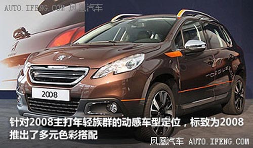1007的推出并獲得好評,代表了消費者對標致跨界產品的認可,在2008年的巴黎車展中,標致展出了Prologue概念車,并在來年年初正式發布了3008,同年法蘭克福車展更追加了5008。2008的出現,要回溯到2012年北京車展所發表的Urban Crossover Concept,仔細觀察這款小型跨界SUV概念,清楚能看到新世代家族徽飾與設計語匯,相隔數個月后的2012年巴黎車展,Peugeot就展出了名為2008 Concept的概念車,相當亮麗搶眼的色彩以及高完成度,讓人更加期待2008的問世到來。