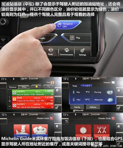 Peugeot Connect App接口的豐富色彩,以及在信息中導入的多元設計,同樣都展現了年輕化的思緒,而其中最有趣卻也最令人感到「法蘭西」風采的功能,當屬Michelin Guide米其林餐廳指南了,畢竟法國料理以及法國人對美食的追求,也是眾所周知的文化特質之一;該項信息服務同樣也是結合GPS,能顯示駕駛人所在地址附近的餐廳,或是關鍵詞搜尋餐廳等,同時也會秀出餐廳的米其林評星。
