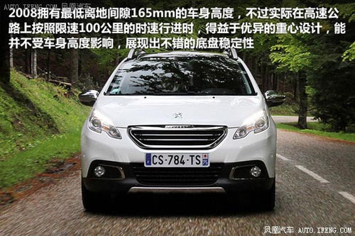 雖然2008小型休旅的車格,讓車身高度 (1556mm) 較高,最低離地高度也達165mm之多,不過實際在高速公路上依據限速100公里 (或以上、依路段不同) 行進時,并不受車身高度影響,多虧優異的重心設定所賜,展現出不錯的底盤穩定性表現。不過,高度較高所帶來的物理現象,當然無法改變,在變換方向時還是會有一點因懸吊形成長度,帶來輕微的搖擺感受,但整體穩定的表現并不因此而蒙損。
