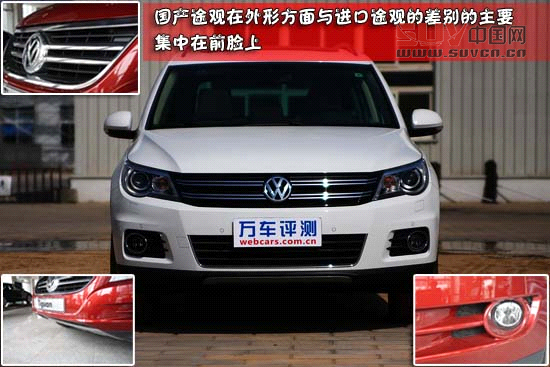 國產(chǎn)途觀在外形方面與進(jìn)口途觀的主要差別的應(yīng)該就是前臉了。國產(chǎn)版途觀的中央進(jìn)氣格柵采用雙輻式設(shè)計(jì),進(jìn)口途觀中央進(jìn)氣格柵周圍的鍍鉻裝飾部分也被“簡配”了。國產(chǎn)途觀進(jìn)氣格柵采用三輻式設(shè)計(jì),霧燈處也是雙輻式設(shè)計(jì),而進(jìn)口版途觀則都是單輻式的。