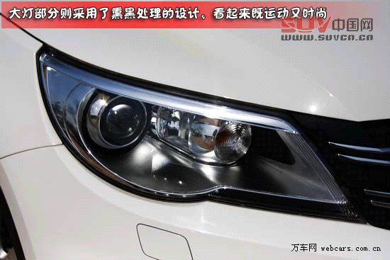 還有一處變化就是從格柵開始一直到下方的護(hù)板區(qū)域,進(jìn)口版本的途觀這一區(qū)域角度非常傾斜,接近角也相應(yīng)的大了很多,國產(chǎn)途觀保險(xiǎn)杠和進(jìn)口版相比向下擴(kuò)展了一大截,所以國產(chǎn)版本的就和大眾的轎車一樣擁有上下兩個(gè)進(jìn)氣格柵。在大燈部分則采用了熏黑處理的設(shè)計(jì),看起來既運(yùn)動(dòng)又時(shí)尚。