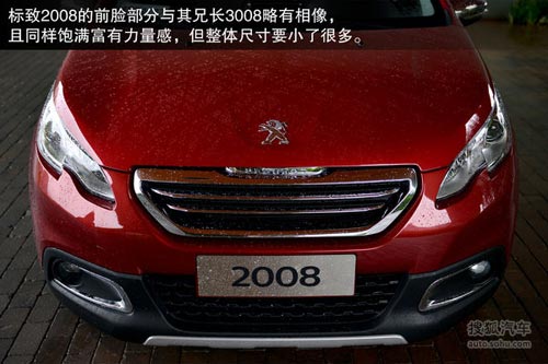 標致2008的前臉部分雖然和其兄長3008略微有些相似之處,但卻有著其自身的獨特之處。開著它出門的回頭率無疑是很高的,顯然年長的人與這款車的風格是不太搭調的,只有愛玩的年輕人才與它匹配的相得益彰,這也與它自身的定位十分貼合。