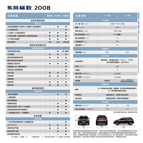 | 標致2008 | 1.6L | 86 | 150 | 5速手動/4速手自一體 |