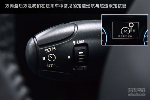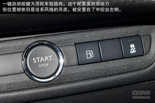 車內還是或多或少的透露這法系車設計的另類,比如一鍵啟動按鈕被安置在中控臺最左側。但整個車內從用料到工藝都做的非常到位,你在做工上幾乎挑不出什么毛病,也許只是在一些配置的應用上要不太符合國人的習慣而已,但它在人性化方面已經有了很大的進步。