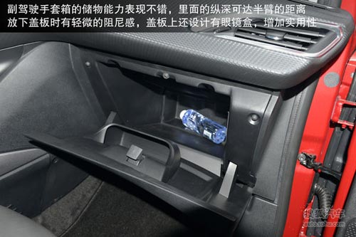 法系車似乎總是更注重的是一種想表達的情感,而忽略了一些更實用的東西,比如儲物空間。這款車的儲物空間并不是很多,而且沒能達到讓人得心應手的感覺,比如人性化的設計了卡槽,但卡槽前面的杯架會完全將之擋住;而杯架本身又很淺,一個飲料瓶也無法穩定的“站”在其中。副駕駛手套箱的縱深很給力,但是用起來真的那么方便嗎?