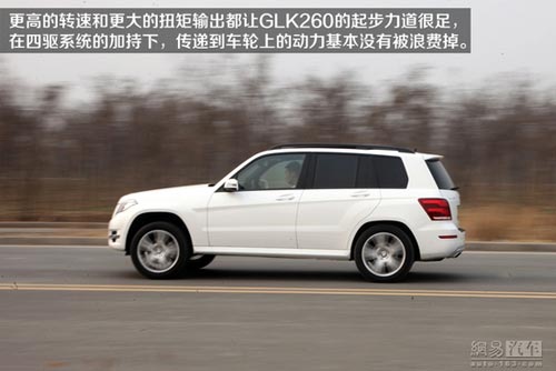 在加速測試項目中,奔馳GLK260可以將轉(zhuǎn)速控制在3000rpm時起步,這要比排量更大的GLK300高一些,更高的轉(zhuǎn)速和更大的扭矩輸出都讓GLK260的起步力道很足。在四驅(qū)系統(tǒng)的加持下,基本沒有發(fā)生太多的打滑,傳遞到車輪上的動力基本沒有被浪費掉。