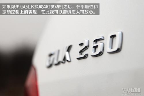 估計有不少人都關(guān)心GLK換成4缸發(fā)動機之后,在平順性和振動控制上的表現(xiàn),在此我可以告訴大家大可放心,因為發(fā)動機的振動在傳遞到車內(nèi)之前已經(jīng)被很好的過濾掉了,除了高轉(zhuǎn)速時的聲響沒有V6動聽之外,其實區(qū)別真不算太大。當(dāng)然,在6缸車的忠實擁躉面前,既然GLK選擇搭載4缸發(fā)動機,那么它已經(jīng)徹底輸了。