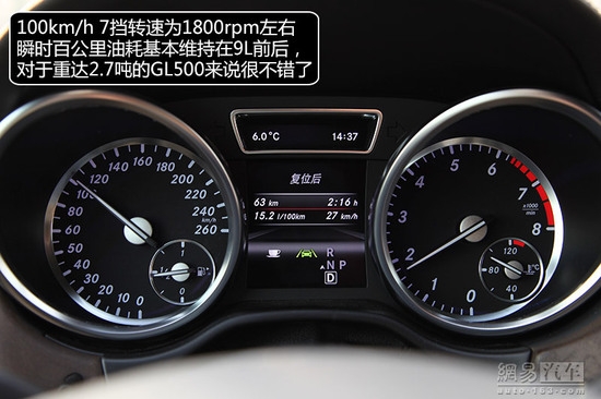 對于這種無法改變的現狀,我們只能樂觀的認為這是物以稀為貴吧。我們還是把視線回到GL500本身,盡管經過工程師的再三努力,將車身重量比上代下降了100kg,但是由于渦輪增壓器和其他豪華設備的加入,還是讓這臺7座SUV的整備質量達到了2591kg,比全鋁車身的攬勝重了270kg左右。在未使用發動機自動啟停技術情況下,測試油耗在百公里14~15L,還是比較不錯的成績。