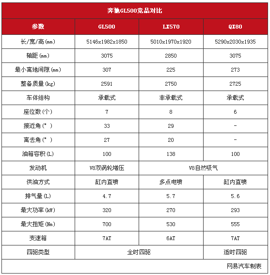 總結:嚴格意義上來講作為第一大豪華品牌,GL擁有絕對豐富和豪華配置,要實用性有實用性,要空間有空間,它幾乎可以滿足大部分中國人對車的全部追求,103.8~159.8萬元的售價在眾多豪華SUV的夾擊下真的不能用昂貴來形容。但就像文章開頭提到的,由于產量有限,經銷商加價銷售是不爭的事實,但這種情況要比某豪華SUV品牌有車屯著不賣還加價20~30的情況還是業界良心多了。在7座全尺寸豪華SUV市場中,GL500在雷克薩斯LX570和英菲尼迪QX80面前也有不同的競爭力,他們在豪華、越野和售后服務方面都有著獨特的優勢,難分勝負。當然還有一些非全尺寸的7座豪華SUV,如謳歌MDX、雷克薩斯GX400等車型也會對GL500構成威脅,不過在行業老大和旗艦車型的光環下,GL500在國內不僅有市場,而且會很有市場。