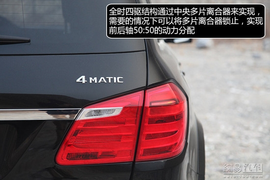 動力從來就不是 GL500 的需要考慮的問題,即便如此變速箱還加入了電控超比擋 LOW RANGE ,進一步放大扭矩,一方面幫助 GL 在滿載情況下通過極端路況,另一方面能夠更精確地控制動力輸出,提高脫困成功率。 GL500 前后軸采用開放式差速器,在車輪遇到空轉時會有電子輔助制動來將動力分配到有附著力的車輪上( 4ETS ),它的全時四驅結構通過中央多片離合器來實現,需要的情況下可以將多片離合器鎖止,實現前后軸 50:50 的動力分配。