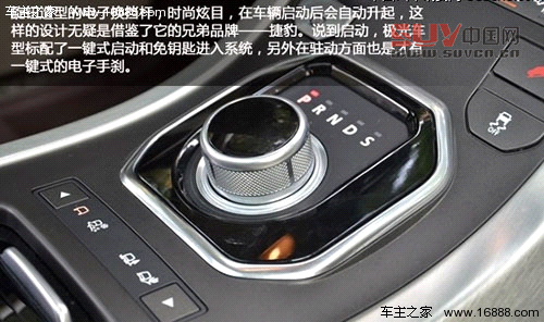 旋鈕造型的電子換擋桿,時尚炫目,在車輛啟動后會自動升起,這樣的設計無疑是借鑒了它的兄弟品牌——捷豹。說到啟動,極光車型標配了一鍵式啟動和免鑰匙進入系統,另外在駐動方面也是才有一鍵式的電子手剎。