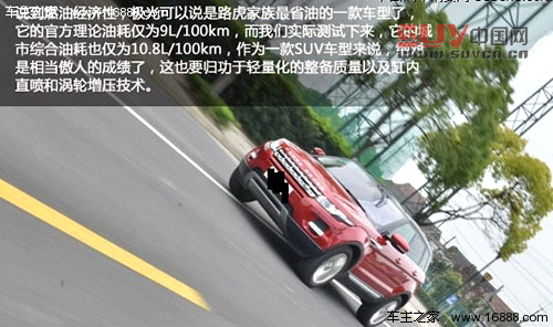 說到燃油經濟性,極光可以說是路虎家族最省油的一款車型了,它的官方理論油耗僅為9L/100km,而我們實際測試下來,它的城市綜合油耗也僅為10.8L/100Km,作為一款SUV車型來說,絕對是相當傲人的成績了,這也要歸功于輕量化的整備質量以及缸內直噴和渦輪增壓技術。
