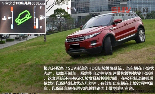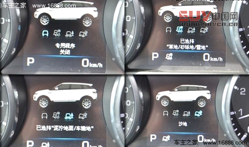 13款的極光同樣也配備了路虎引以為傲的全地形反饋系統(Terrain RESPonse system),但令人遺憾的是新款極光減去了動態模式,目前只剩下4種不同的駕駛模式:普通、草地/砂礫地/雪地、泥濘地面/車轍地、沙地。在不同的駕駛模式下,發動機、懸架、變速箱、穩定性控制都有相應的調校。據了解,該系統將以每秒1000次頻率監測車輛行駛狀態,從而做出反應保障駕駛安全。