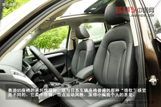 前面已經講過,奧迪Q5座椅的承托性很好,這與日系車輛座椅普遍的那種“綿軟”感覺是不同的,它柔中帶鋼,帶點運動風格,深得小編我個人的喜愛。