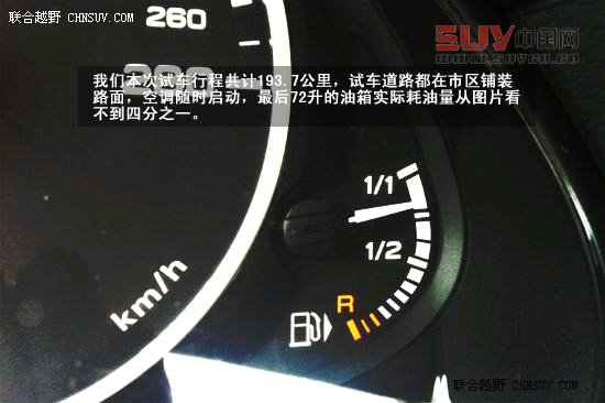 6、既然是混動車型,相信很多購車人對它的油耗水平保持了很大的希望。此款車型工信部綜合油耗顯示為百公里7.4個油。我們本次試車行程共計193.7公里,試車道路都在市區鋪裝路面,空調隨時啟動,最后72升的油箱實際耗油量從圖片看不到四分之一。如果按72升油箱的1/4,也就是18升總耗油量來計算,那么粗略可以計算出百公里耗油量約為9.3個油——如果把總耗油量再精確些,數值應該還會更低。總體來說,這個數據還是相當不錯的。這種開了兩天都不見下油的感覺,在油價高漲的今天,感覺還是相當歡樂的。
