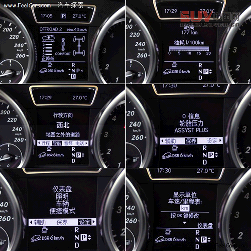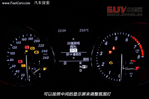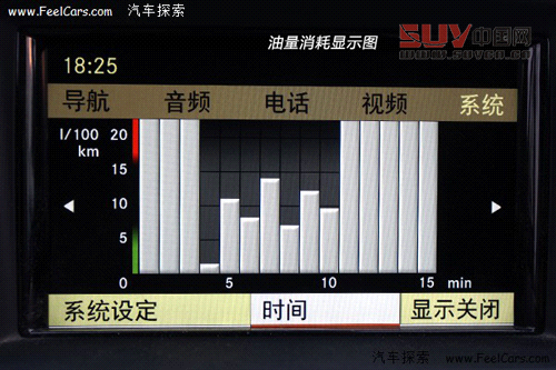 儀表盤中間的液晶屏可以顯示諸如行程、導(dǎo)航、音頻、電話、輔助、保養(yǎng)、設(shè)定、底盤等信息。在行駛過程中可以用方向盤上的快捷鍵,根據(jù)此屏幕的顯示來進行各種功能的設(shè)定。
