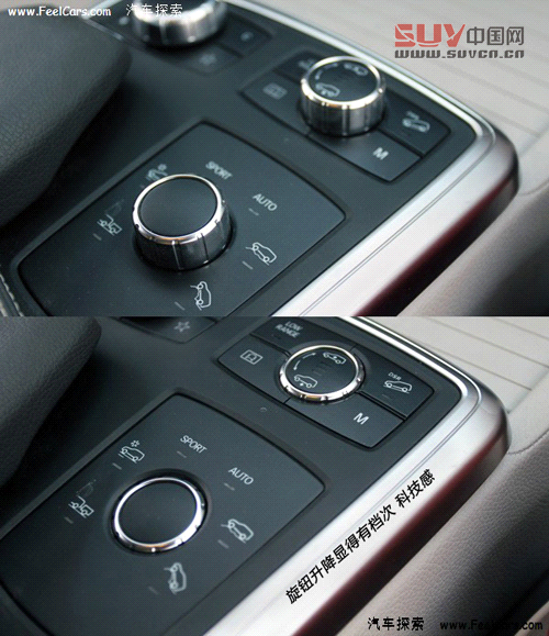 奔馳的內(nèi)飾一向是大方簡潔,素雅不膩味。ML中控臺看上去中間隆起圓潤,特別是中間木質(zhì)裝飾和上深下淺的顏色搭配,看上去有著厚重感。娛樂控制區(qū)和空調(diào)控制區(qū)依然保持了奔馳的一貫設(shè)計風(fēng)格,上下布置的安排也合理,畢竟娛樂區(qū)的使用要比空調(diào)頻繁多了。