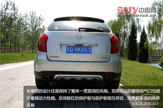 車尾部的設計還是保持了整體一貫圓潤的風格。雙排雙出的鍍鉻排氣口也昭示著其動力性能。后保險杠的保護板與前護板相互呼應,給予其更強的跨界感風格。四個感應點的倒車雷達也給予駕駛員更加精確的提示。