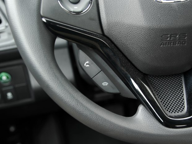 多功能真皮方向盤大小適中,手感也較為細(xì)膩。功能方面,它支持四向調(diào)節(jié),上面還集成了音響控制以及藍(lán)牙電話功能按鍵,便于駕駛員操作。