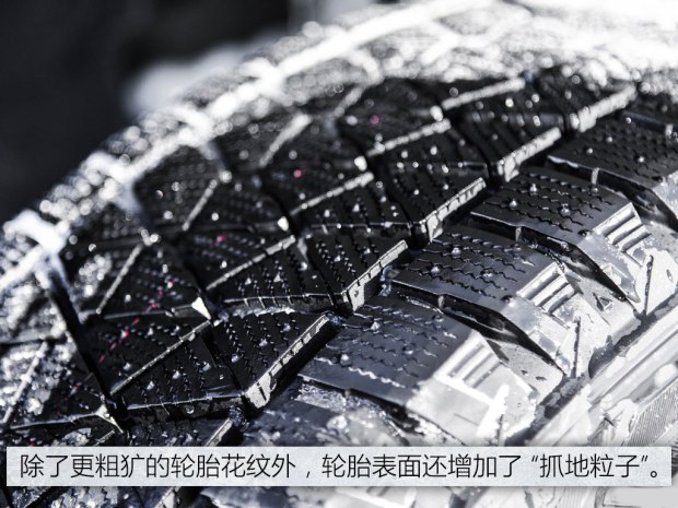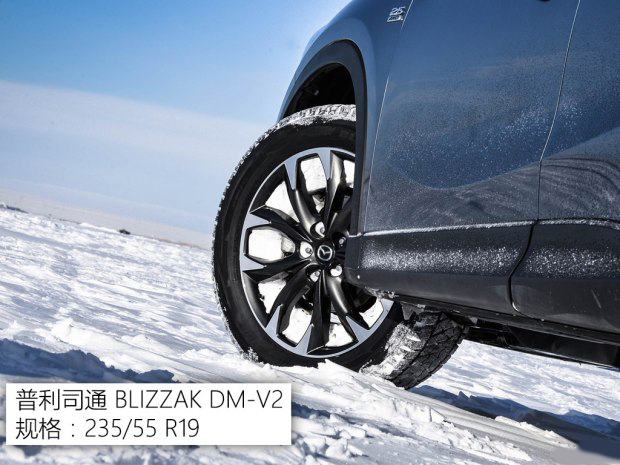 對付冰雪路面,一套合適的輪胎起到的作用,甚至比四驅(qū)系統(tǒng)更為有效。我們所試駕的CX-5都換上了普利司通的BLIZZAK(冰銳客)系列SUV冬季輪胎,型號為2015年9月份才上市的DM-V2。這套輪胎采用了全新活性發(fā)泡橡膠技術(shù),在以往發(fā)泡橡膠中所含有的氣室表面增加親水材料涂層,更有效去除導(dǎo)致輪胎打滑的冰面水膜,提高冰雪路面抓地性能。