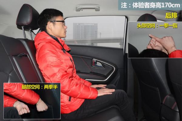 體驗者身高170cm,坐在前排頭部有一拳兩指的空間。