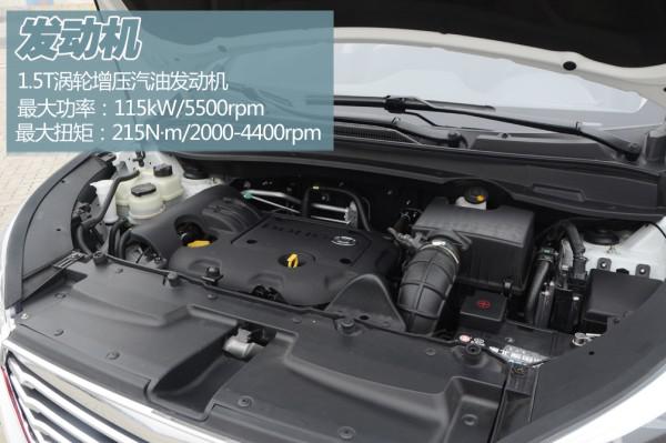 2016款圣達菲摒棄了老款2.0T柴油發動機,只有一臺1.5T渦輪增壓汽油發動機,發動機最大功率115kW/5500rpm,最大扭矩215N·m/2000-4400rpm,動力相比同級別1.5T發動機有一定優勢。