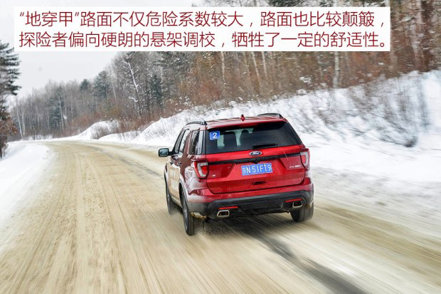 看似平整的路面底下都暗藏著冰塊,路面還是比較顛簸的,探險者的懸架則把多數(shù)顛簸產(chǎn)生的振動傳遞到了車內(nèi),它的懸架并不像我們固有印象中美系車那么柔軟舒適,偏向硬朗的調(diào)校是為了提升車身的平穩(wěn)性和減小彎道中的側(cè)傾,但確實犧牲了一定的舒適性。