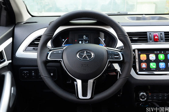 無獨有偶,如果您熟悉瑞風S2的內飾風格,那么也不會對iEV6S的內飾感到陌生,依舊以硬質塑料為主要材質,功能分區中規中矩,內飾配色采用黑白相搭,當然,儀表數據的呈現方式、多媒體屏幕顯示內容都會因為是電動車,而有所不同,另外,我比較喜歡這個皮革包裹的方向盤,握感適中,操作也很輕盈。
