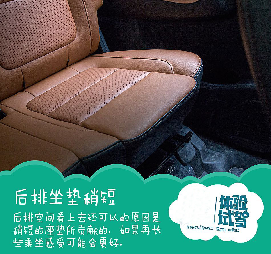 實(shí)拍車型采用了皮革和真皮混搭座椅,造型偏向運(yùn)動(dòng),但乘坐起來還是以舒適為主,填充物柔軟支撐良好。但在后排的體驗(yàn)中我發(fā)現(xiàn),座墊設(shè)計(jì)的有些短,對(duì)大腿的支持明顯不足,還需改進(jìn)。