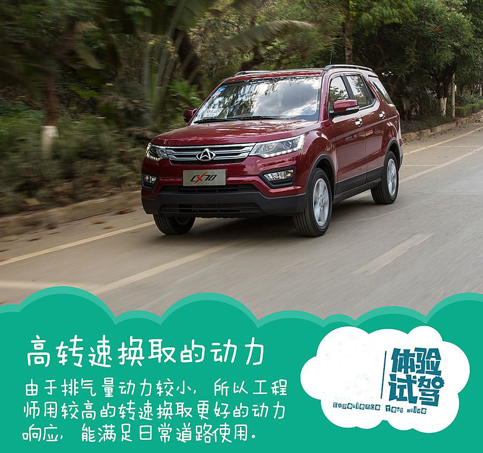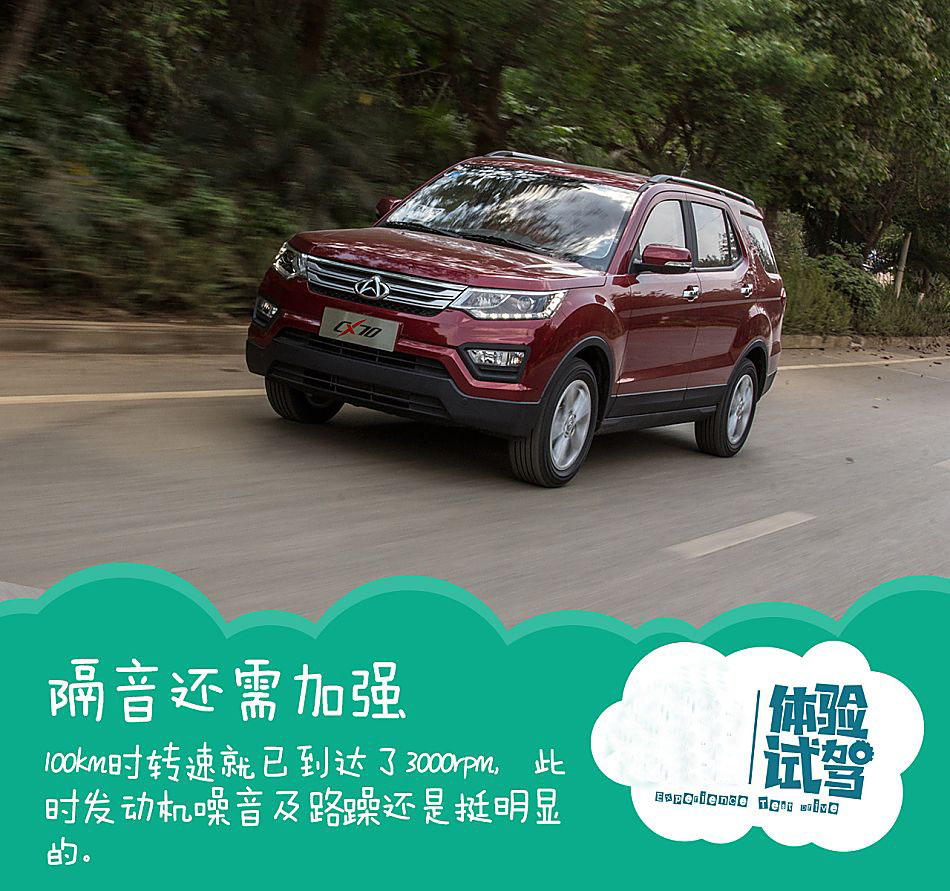 1.6L會(huì)給人小馬拉大車的不良想象,不過經(jīng)過體驗(yàn),這種情況基本沒有發(fā)生在CX70身上,雖說動(dòng)力不算充沛,但變速箱和發(fā)動(dòng)機(jī)的匹配相當(dāng)不錯(cuò)。每一次換擋,發(fā)動(dòng)機(jī)轉(zhuǎn)速落差并不太大,再加上這臺(tái)發(fā)動(dòng)機(jī)的中低速扭距還不錯(cuò),所以油門響應(yīng)積極。同時(shí)工程師刻意將轉(zhuǎn)速調(diào)高,以換取更好的動(dòng)力響應(yīng),不過缺點(diǎn)是會(huì)比較費(fèi)油,在100km/h,其轉(zhuǎn)速就以到達(dá)了3000rpm,跑高速時(shí)噪音和油耗是個(gè)問題。