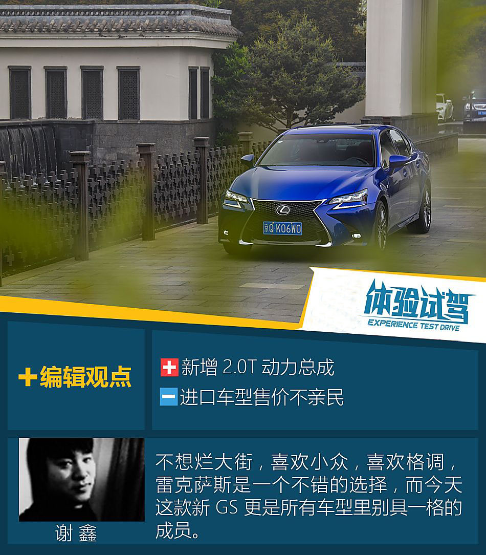 不過話說來,在汽車領域中,能符合上文所需要的各種指標,但又是常人能夠涉及的,我只能想起來雷克薩斯,內斂、質感、等關鍵詞都是屬于這個品牌的標簽。如果要聊起具體的車型,不妨看看它的GS,能否勝任您在平日之余所漣漪起的種種情懷!