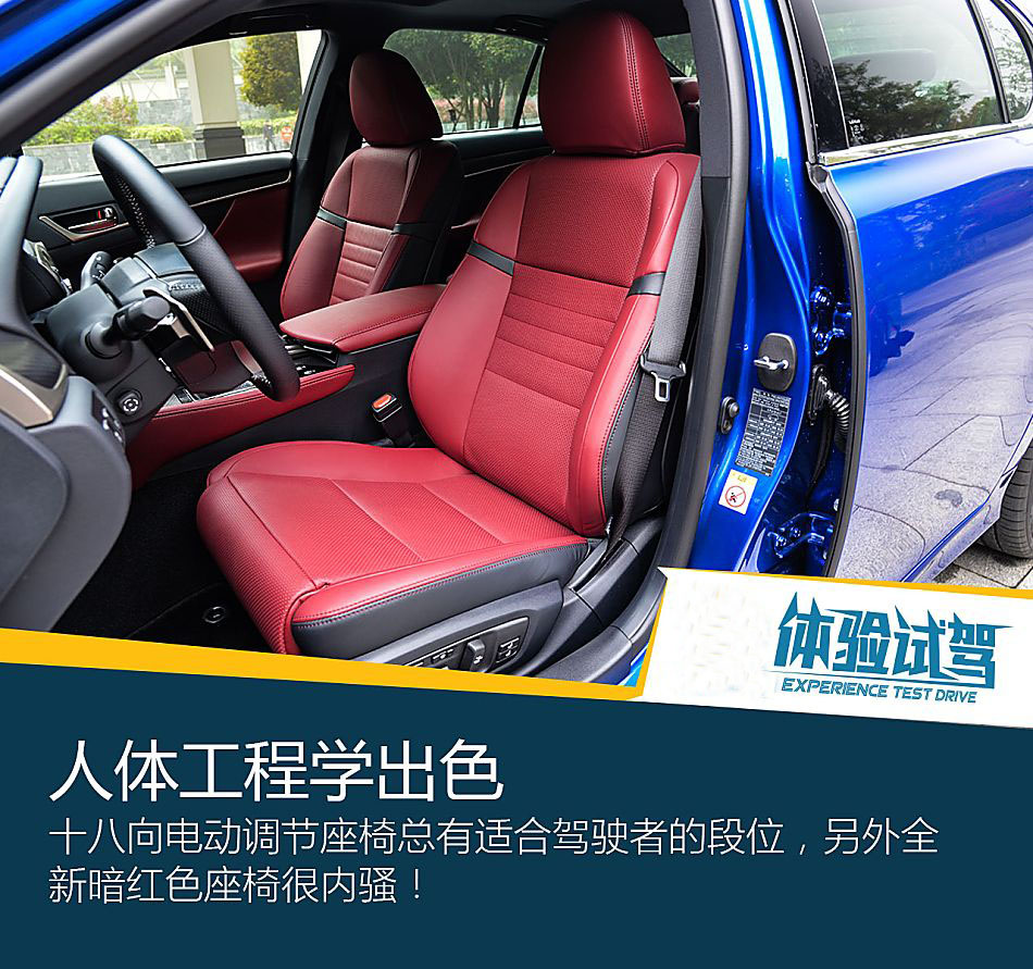 內飾還是熟悉的面孔,但還是原來的配方嗎?說幾點,1、18向電動調節座椅很舒服,具體在背部和腰部都帶有彈簧支撐,另外還具有一個盆骨支撐功能的座椅結構,這點挺新鮮,在試駕體驗中坐著倒是挺舒服的。2、新雷克薩斯 GS 還配有副駕駛席座椅 Ottoman 傾角調節功能,也就是意味著副駕能更舒服的坐車,對女性及老人還挺好使。