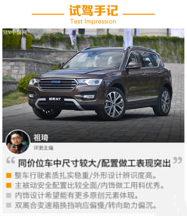 【SUV中國網(wǎng)】中國品牌SUV市場(chǎng)新兵一茬接一茬的涌現(xiàn),在激烈的市場(chǎng)競(jìng)爭(zhēng)中,產(chǎn)品沒有亮點(diǎn)就會(huì)被無情地淘汰,長(zhǎng)城汽車作為生產(chǎn)SUV的老牌廠商深知這一點(diǎn),旗下的哈弗H6在市場(chǎng)中混得風(fēng)生水起,不過車型偏老了,而高端的H8和H9則提升了品牌形象,是時(shí)候出一款定位高級(jí)別的走量車型了,所以哈弗H7經(jīng)過長(zhǎng)時(shí)間的準(zhǔn)備終于要上市了,今天我們就通過試駕帶著大家看看這款車到底怎么樣。