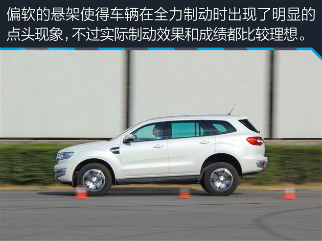 撼路者在制動測試中的表現(xiàn)較為穩(wěn)定,連續(xù)多組制動成績均為在40-41米,其中最好成績?yōu)?0.08米。從車輛在制動測試中的實(shí)際表現(xiàn)來看,撼路者的初段制動力度稍有波動,整個制動過程中都能保持-1g左右減速G值,制動踏板的彈腳力度較為柔和,而40米出頭的成績雖然和旗艦版車型有1米多的差距,但考慮到其整備質(zhì)量超過2.3噸,這一制動距離也算得上是一個不錯的成績。